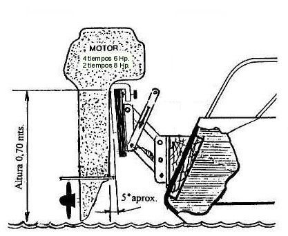 En las escuadras que lo sujetan al espejo de la embarcación tiene 3 juegos de agujeros para hacer un ajuste de la posición vertical de hasta 50mm en pasos de 25 mm.