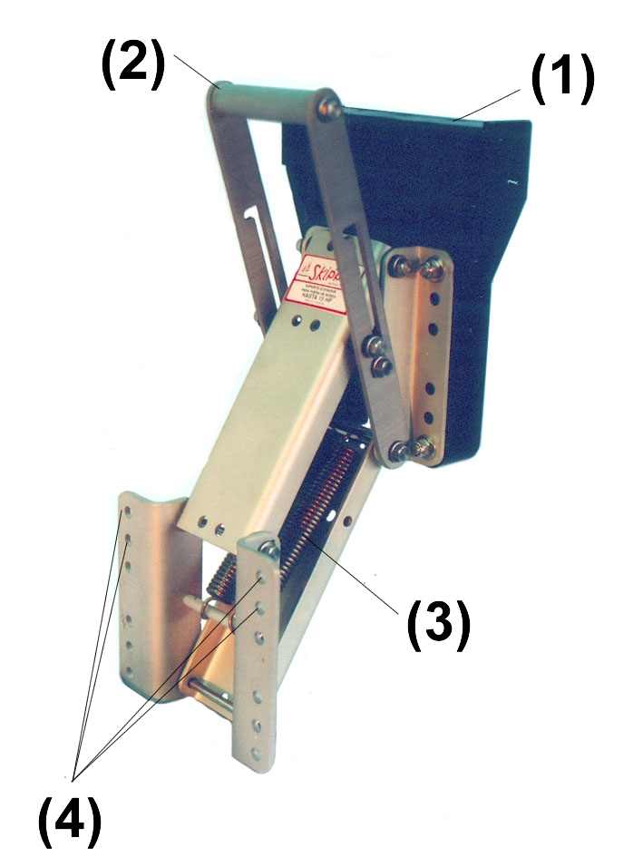 1)Placa de ajuste motor--2) Palanca de traba--3)Resorte --4)Corrección vertical
